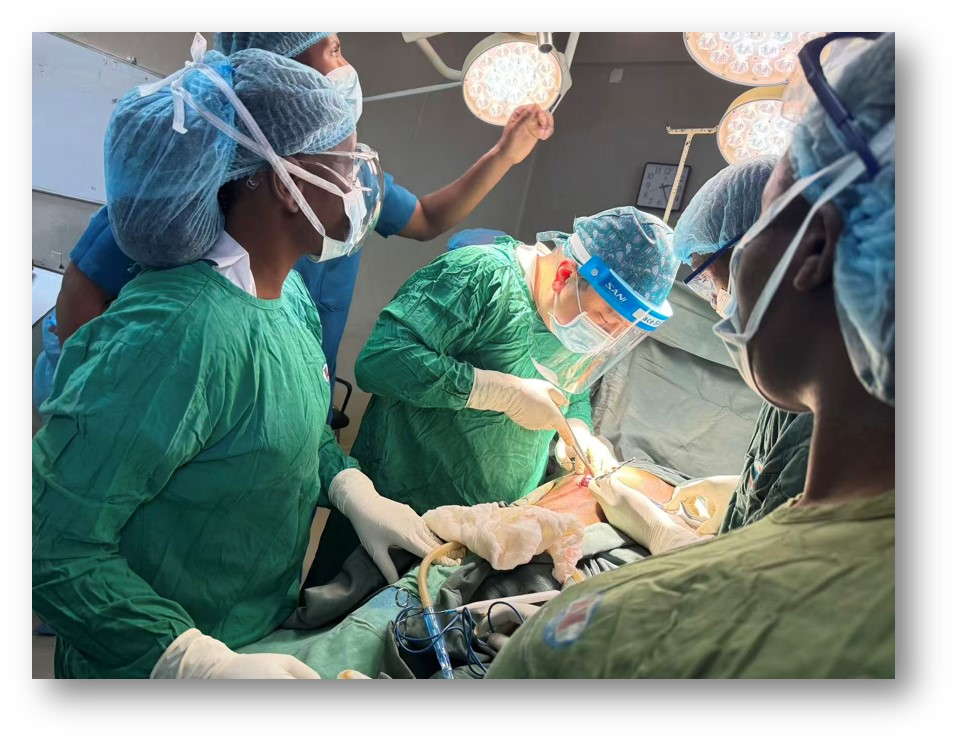 此外,他还积极参与医疗队组织的多次大型义诊活动,包括2024年8月,与中国人民解放军海军和平方舟号医院船联合开展为期一周的义诊,服务患者超300人次;2025年4月、6月,先后在马托拉省医院、卡腾贝区因卡萨内医疗中心开展综合义诊,接诊群众近700人次等。