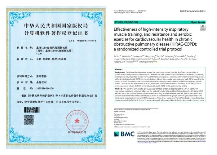 目前研究成果已在国际高水平期刊刊载并形成对重度慢阻肺患者的风险预测方法,申请了国家专利。