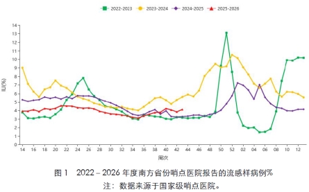 从 38 周开始,今年南方省份哨点医院报告的流感样病例明显比往年高(除 23 年)。